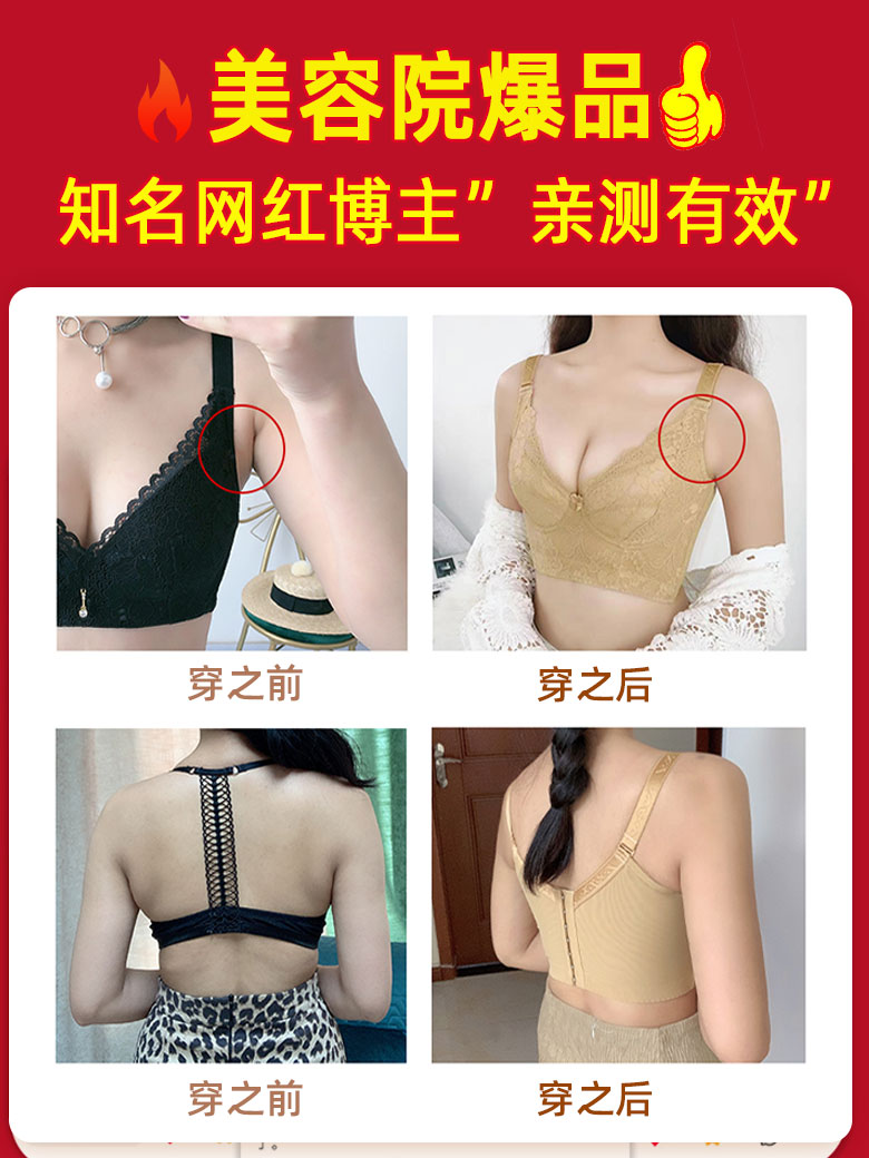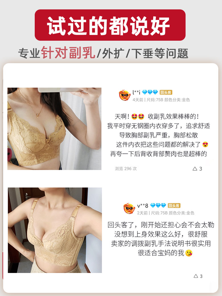 Underwear bra women's big chest show small breast reduction thin section anti-sagging gathered sub-breast bra summer soft rim seven-breasted buckle