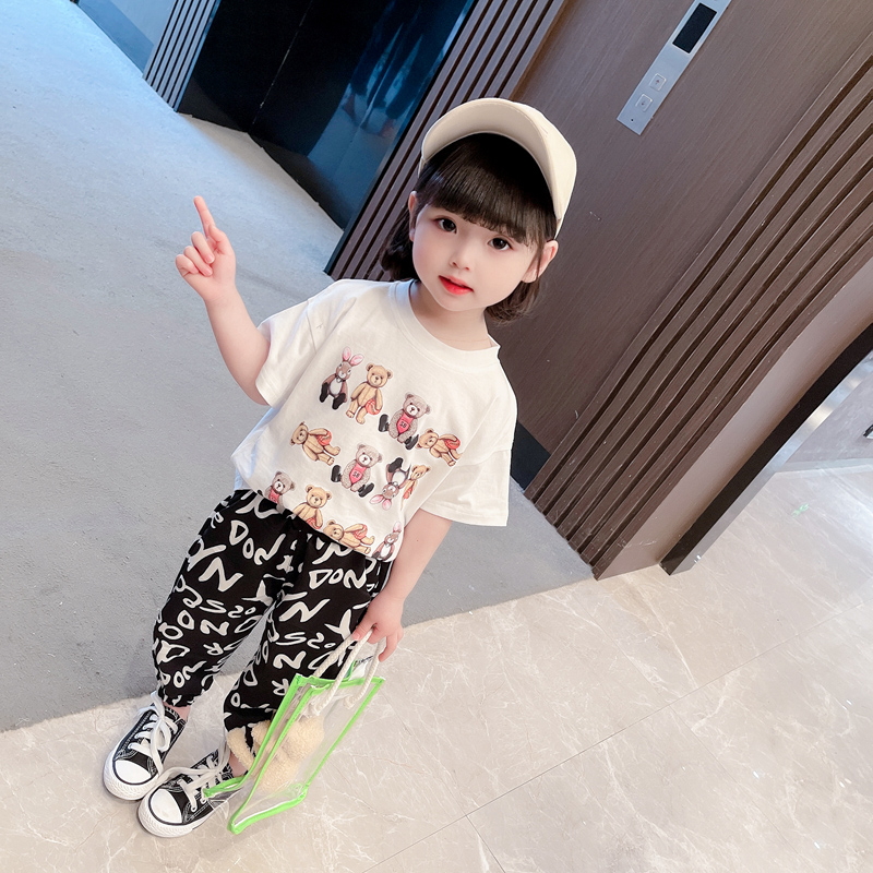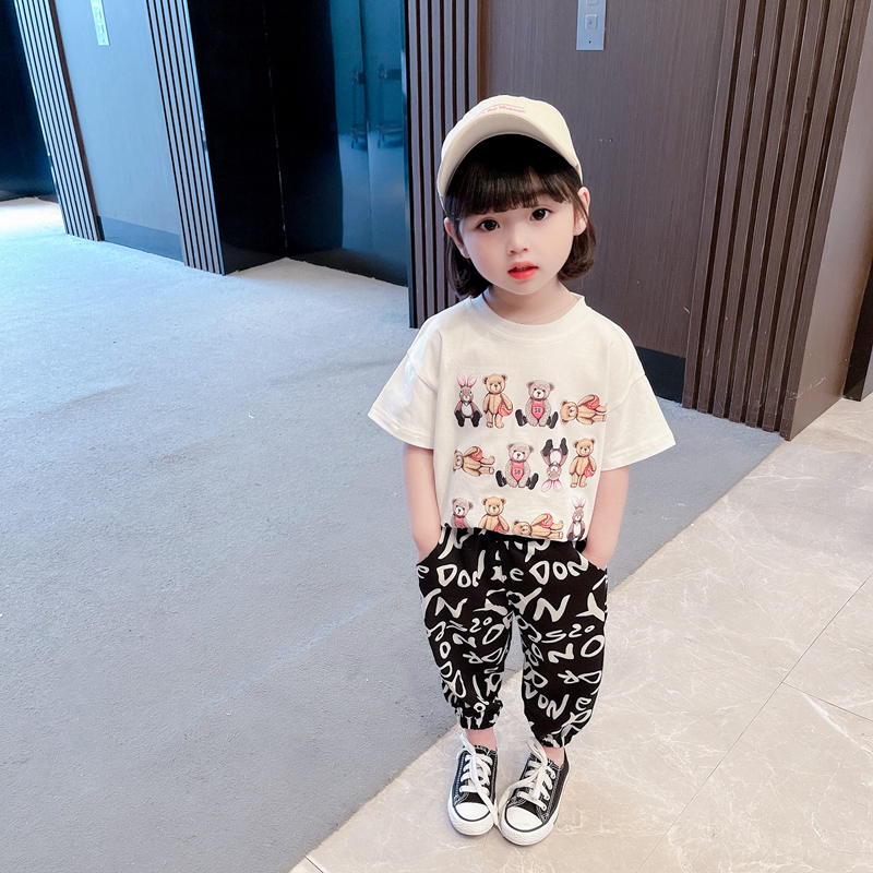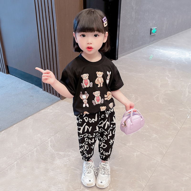 Girls' summer suits 2022 new one-year-old female baby summer 2 Western style 3 children's short-sleeved 4 two-piece suit 5 tide