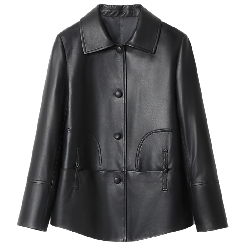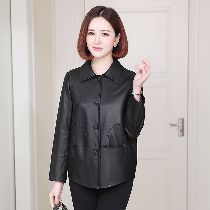 Leather jacket woman short style 2022 spring new small sub loose Haining sheep peeler car to wear leather leather jacket