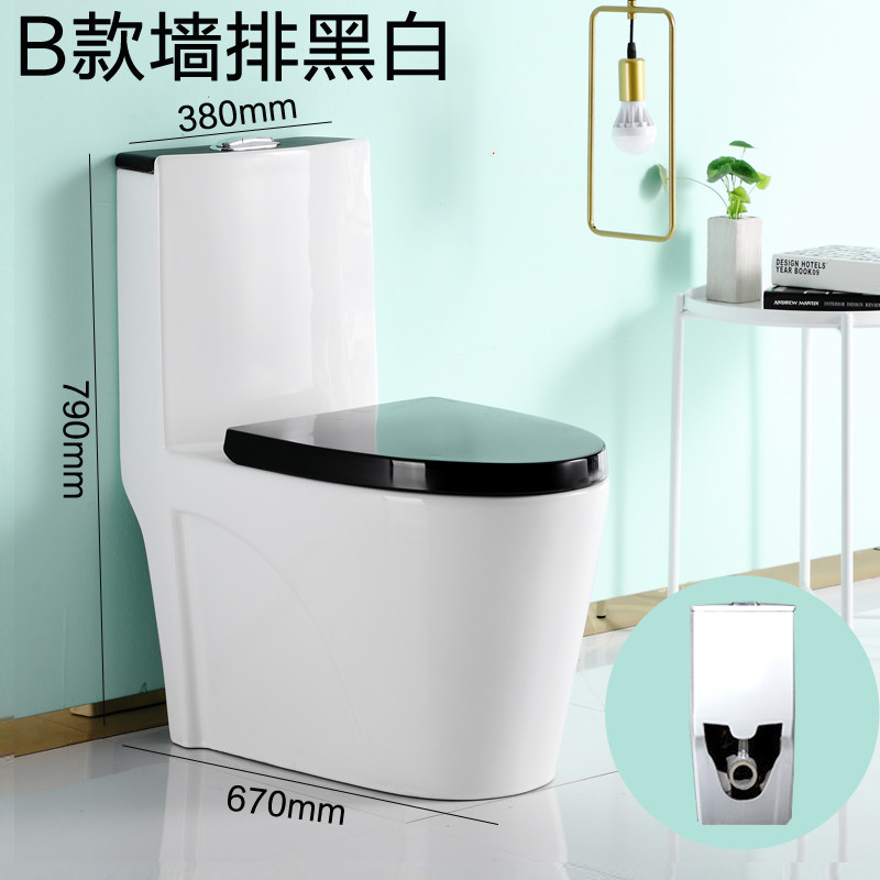 Household ceramic water-saving deodorant black wall row toilet rear drain one-piece large-diameter straight flush toilet
