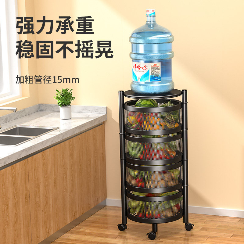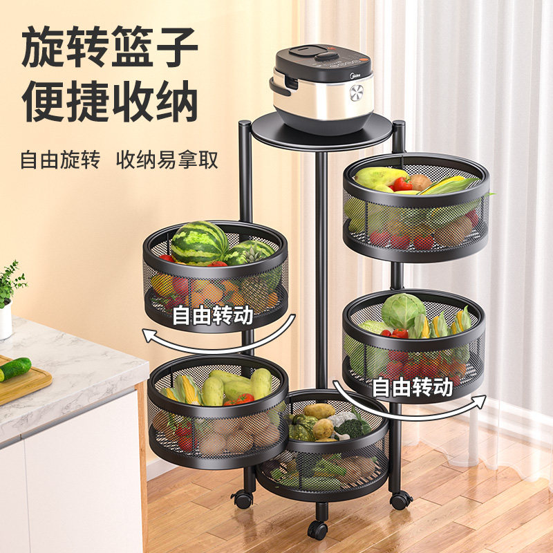The kitchen vegetable shelf is cylindrical and rotatable to the floor multi-layer vegetable basket fruit and vegetable snack storage rack for household items