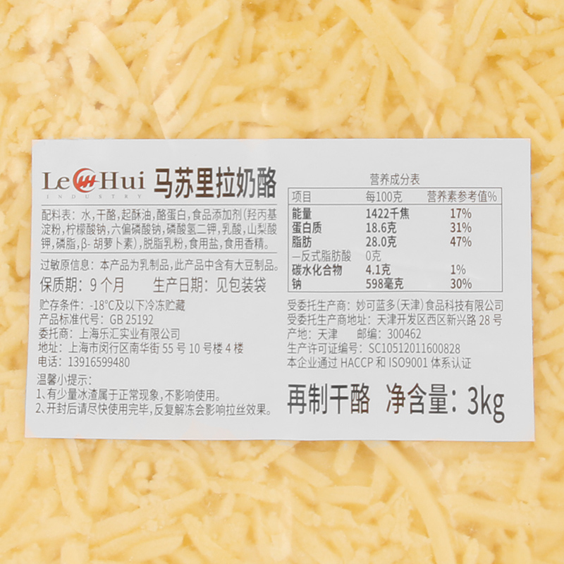 Le Sinks Masuria Lachi Cheese Shredted Cream Cheese Cheese Cheese Cheese Toast-Baked Rice Pizza Wire Drawing Commercial materials