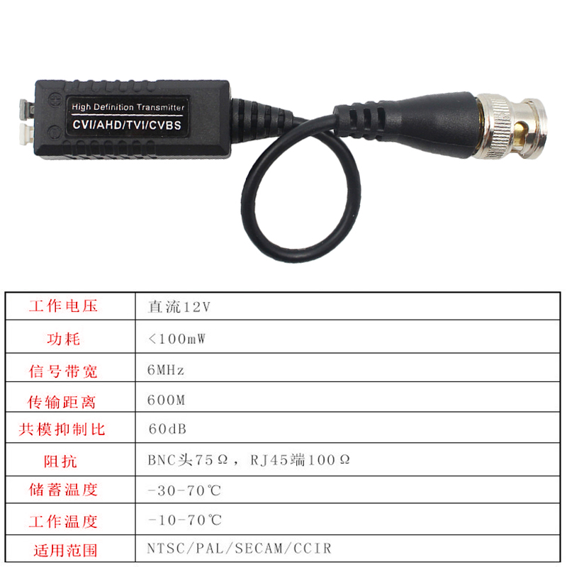Passive twisted pair transmitter analog coaxial camera special AHD CVI TVI film transmission converter