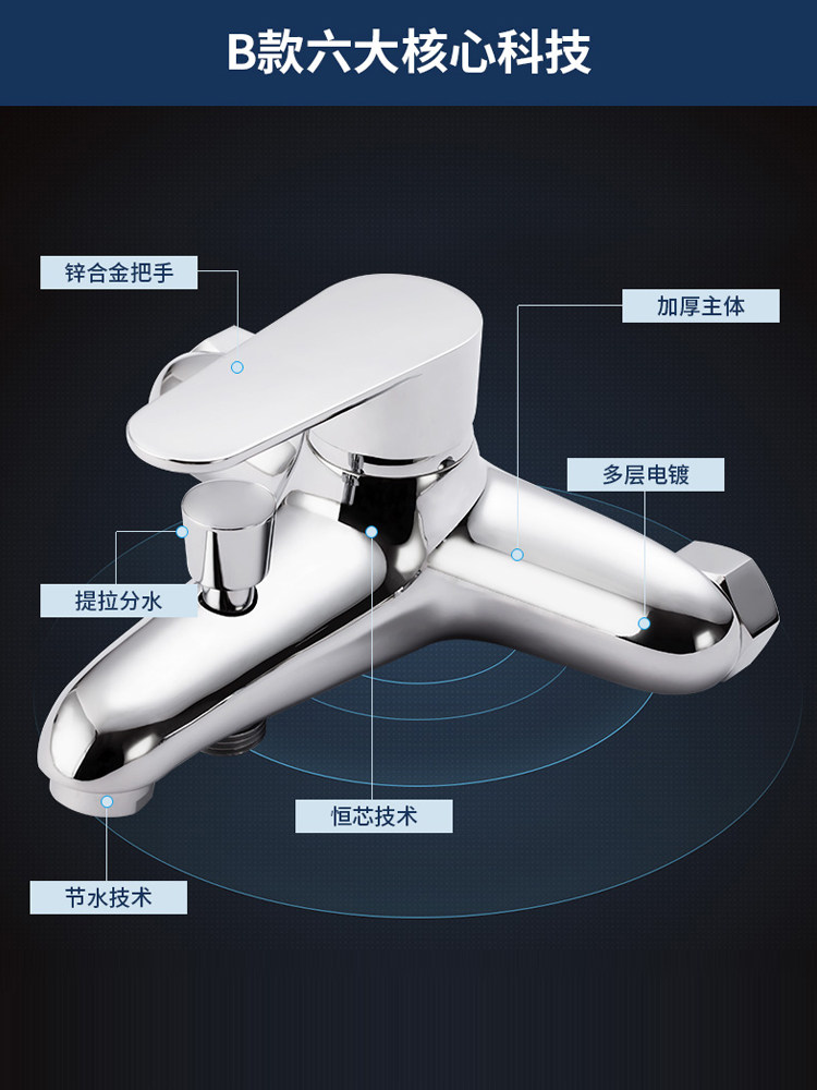 Arrow sign bathroom water mixing valve faucet shower water heater water temperature hot and cold double cut bathtub shower tap AE4806