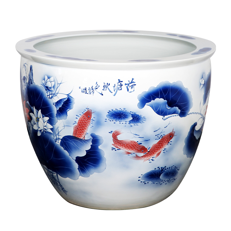 Ceramic large tank blue and white hand-painted antique home courtyard balcony outdoor landscaping lotus water lily goldfish koi large tank