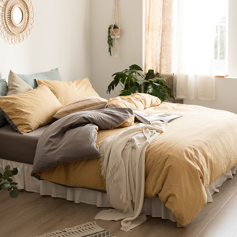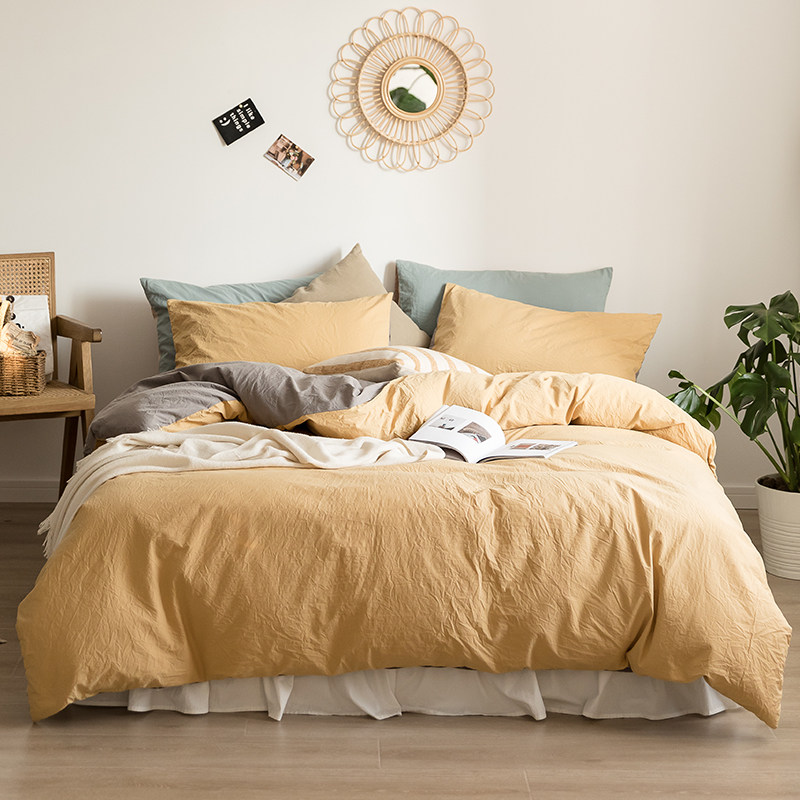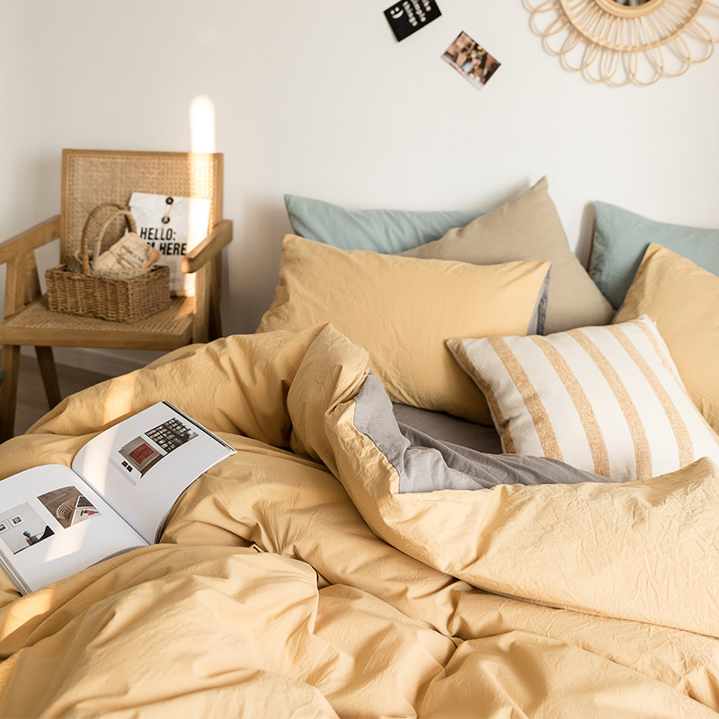 Pure cotton minimalist pure colour double parquet of four pieces of summer full cotton 1 8 m quilt cover bed linen comfort bed bedding