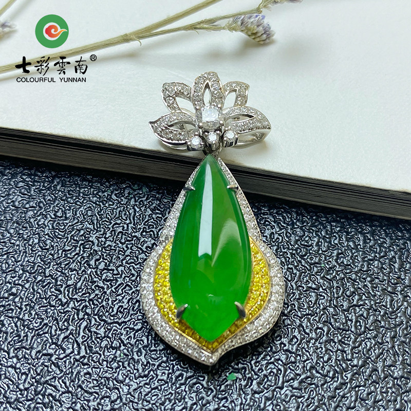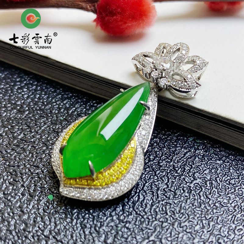 Colorful Yunnan and Burma A goods natural jadeite with certificate 18K gold inlaid high ice bright green jadeite pendant