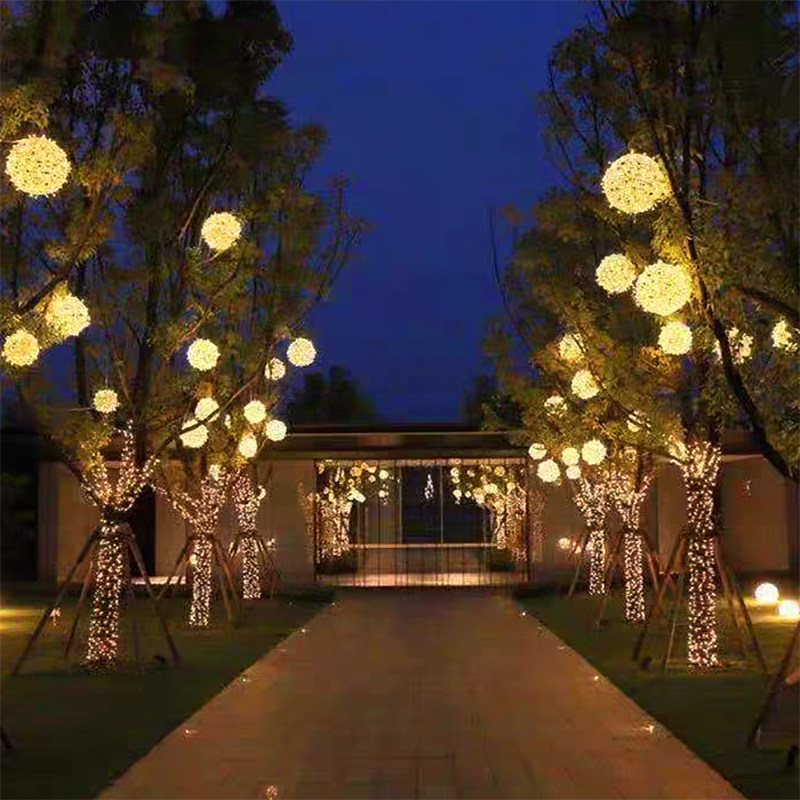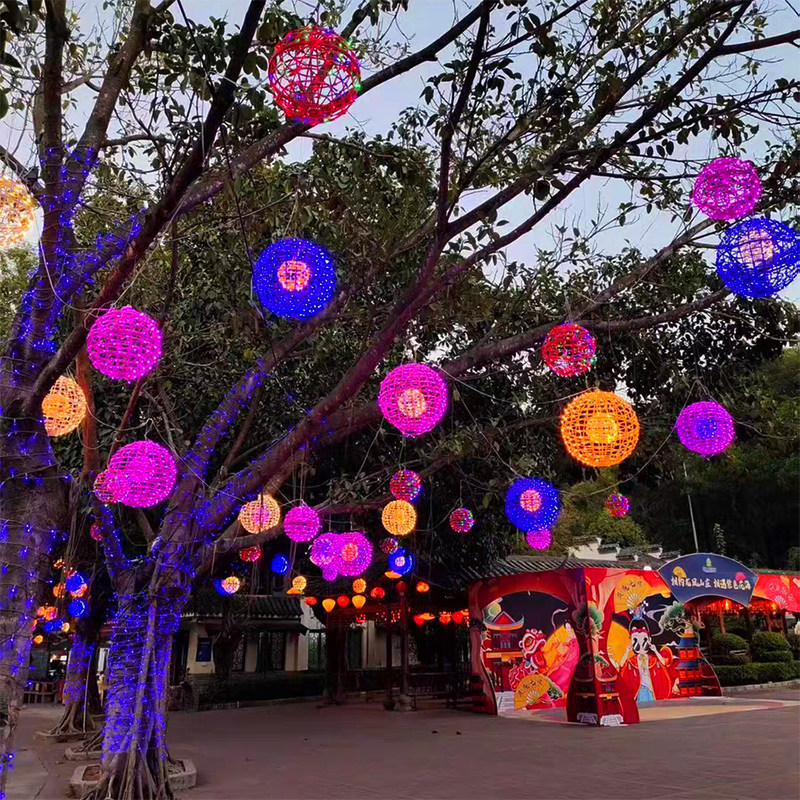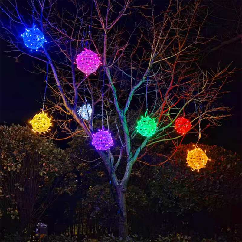Rattan ball hanging tree LED light outdoor waterproof New Year festival park street lighting starry ball decoration lantern