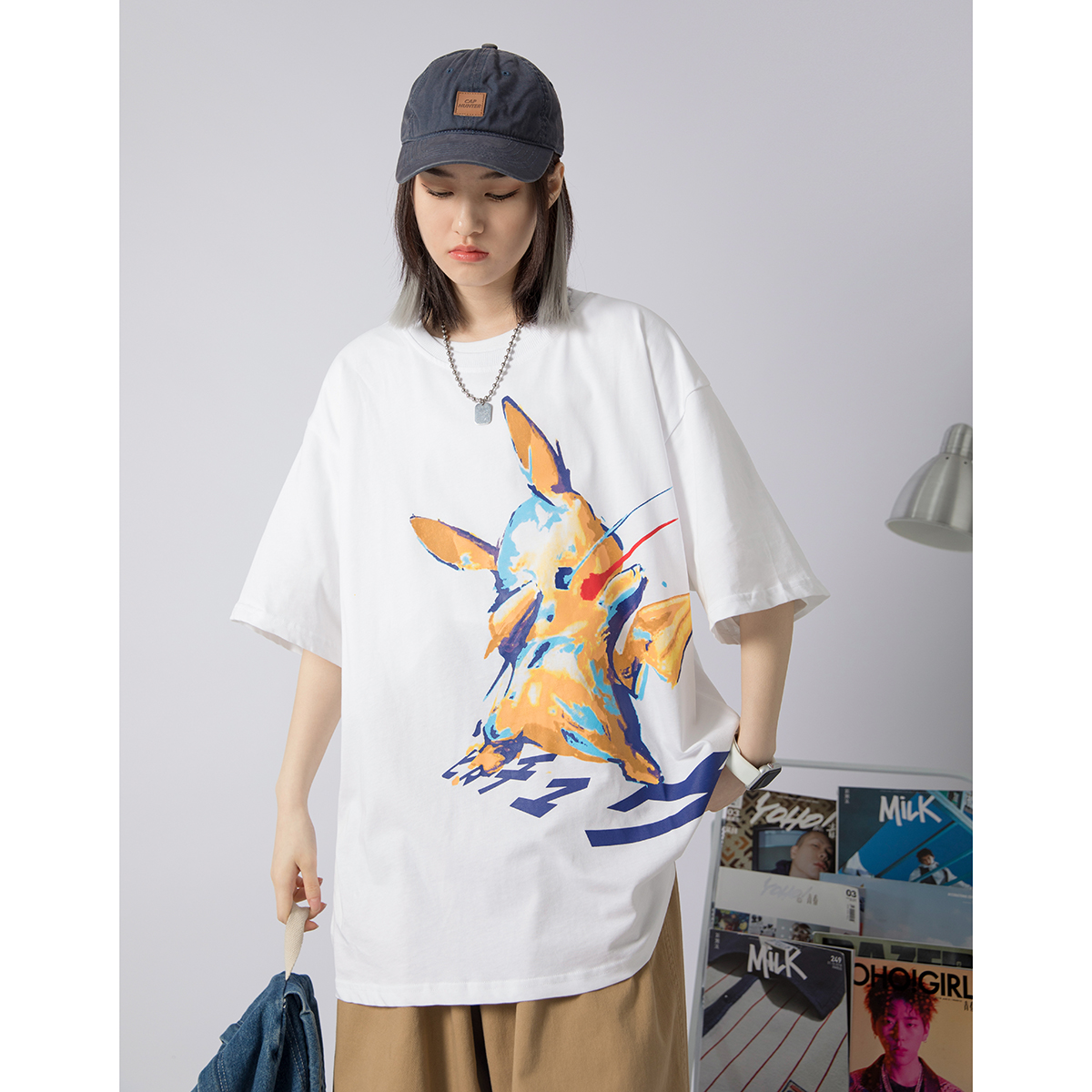 D9 second short sleeve T-shirt female Korean version of loose 2021 new summer pikachu oversize cotton half sleeve jacket