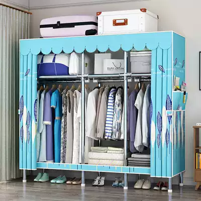 Cloth wardrobe simple wardrobe home bedroom rental room with steel pipe thick reinforcement solid Assembly zipper fully enclosed