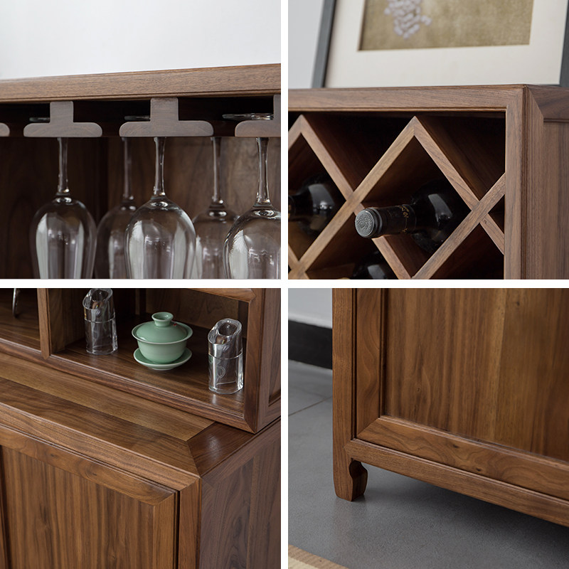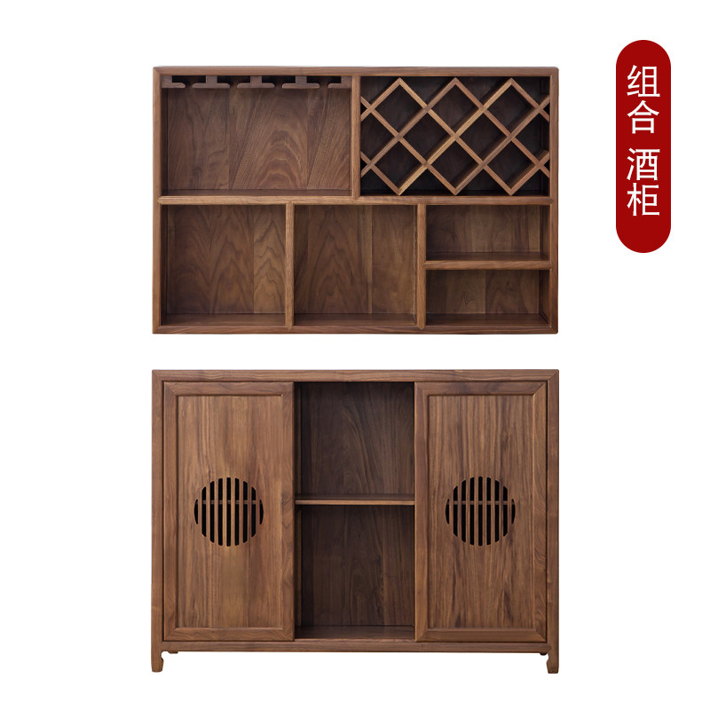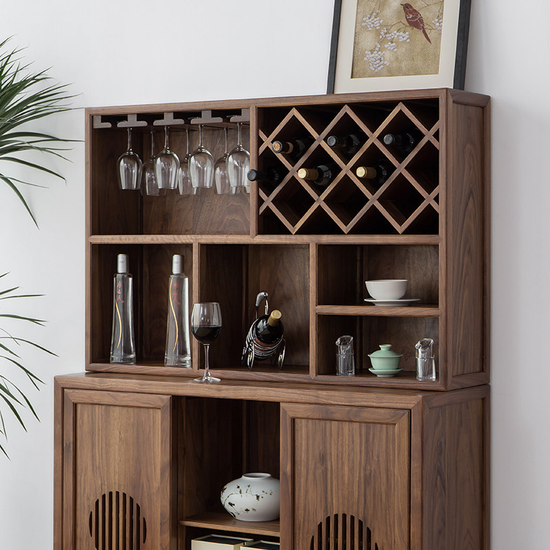 New Chinese Solid Wood Wine Cabinet Black Walnut Wood Modern Minima Dining Cabinet Old Elm Wood Solid Wood Tea Cabinet Locker