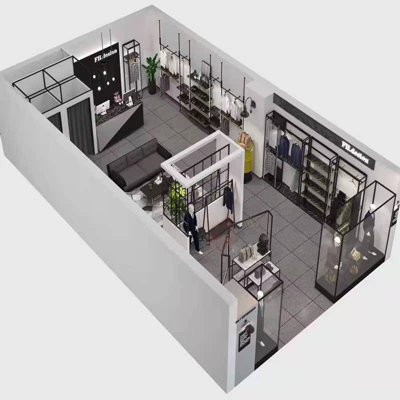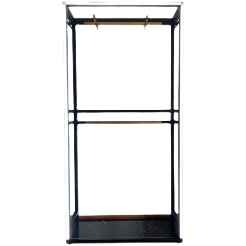 Clothing Store Hanger Racks for Men's Clothing Display Combined Shelf Luminous Bilayer Titanium Alloy Floor Type Positive Side Hanging Shoe Rack