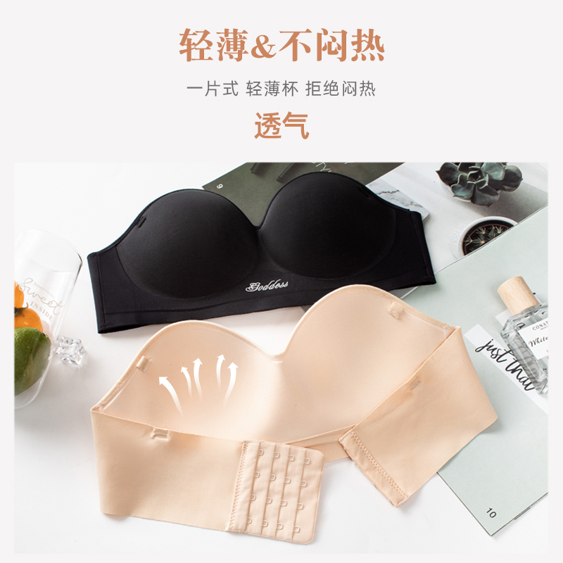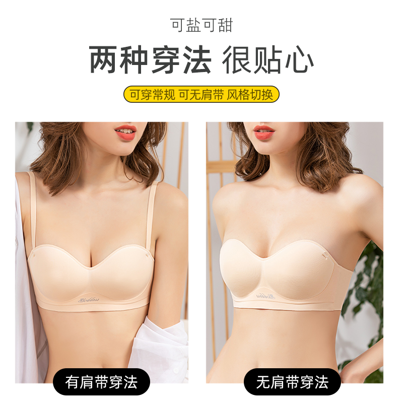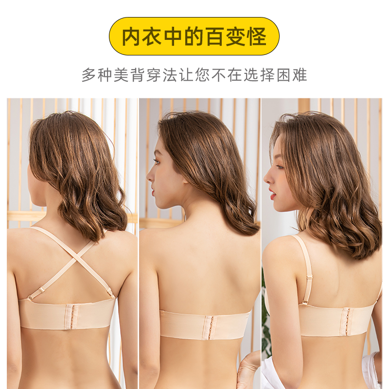 Strapless non-slip sexy lingerie women's underwire-free summer invisible small bra gathered bra beautiful back wrapped chest bandeau