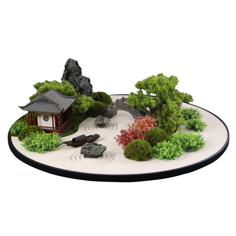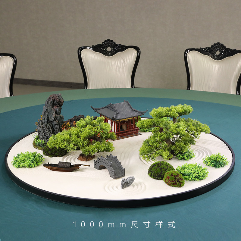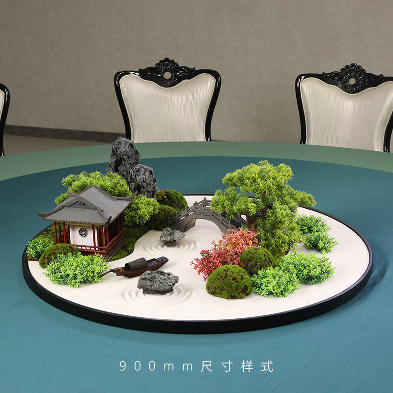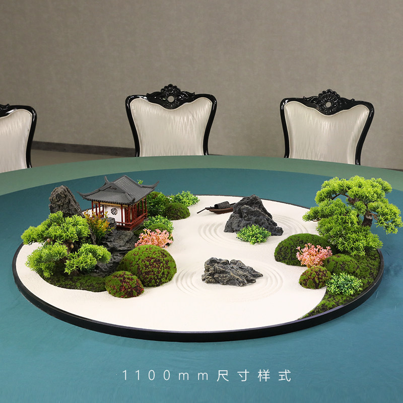 New Chinese hotel dining table decoration round table creative landscaping dry landscape sand table flower turntable middle landscape decoration