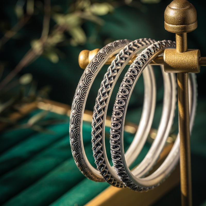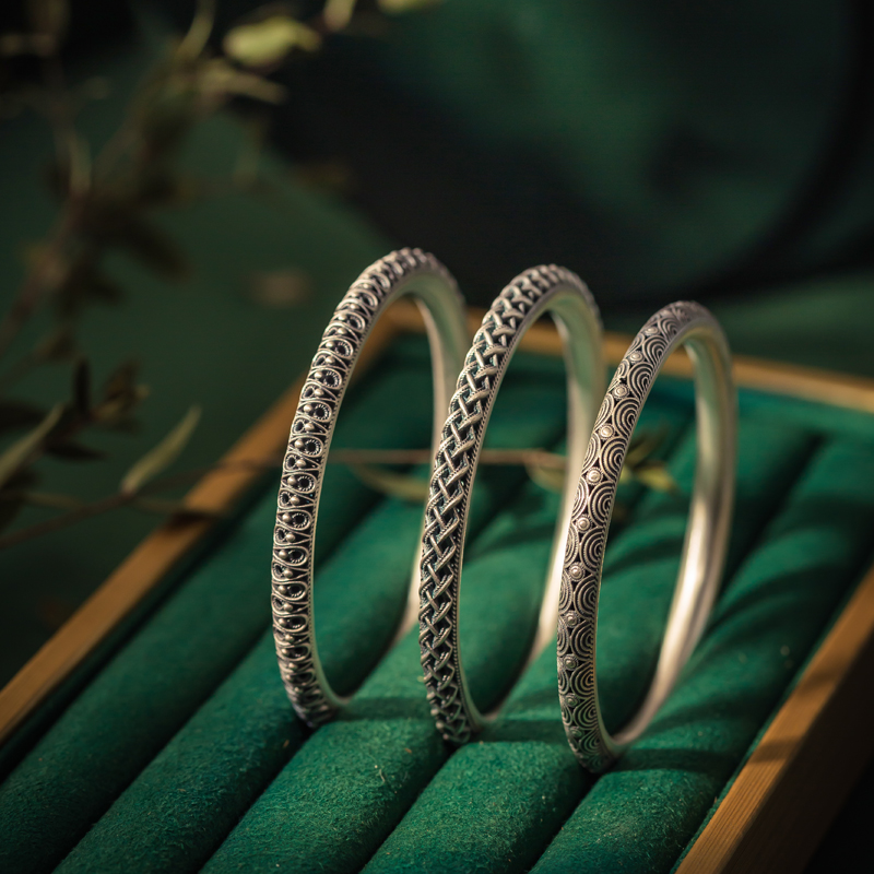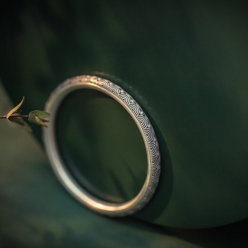 Mountain and Song Pure Silver 999 Old Vintage Pattern Ocean Wave Pattern Imitation Filigree Closed Hollow Sterling Silver Bracelet