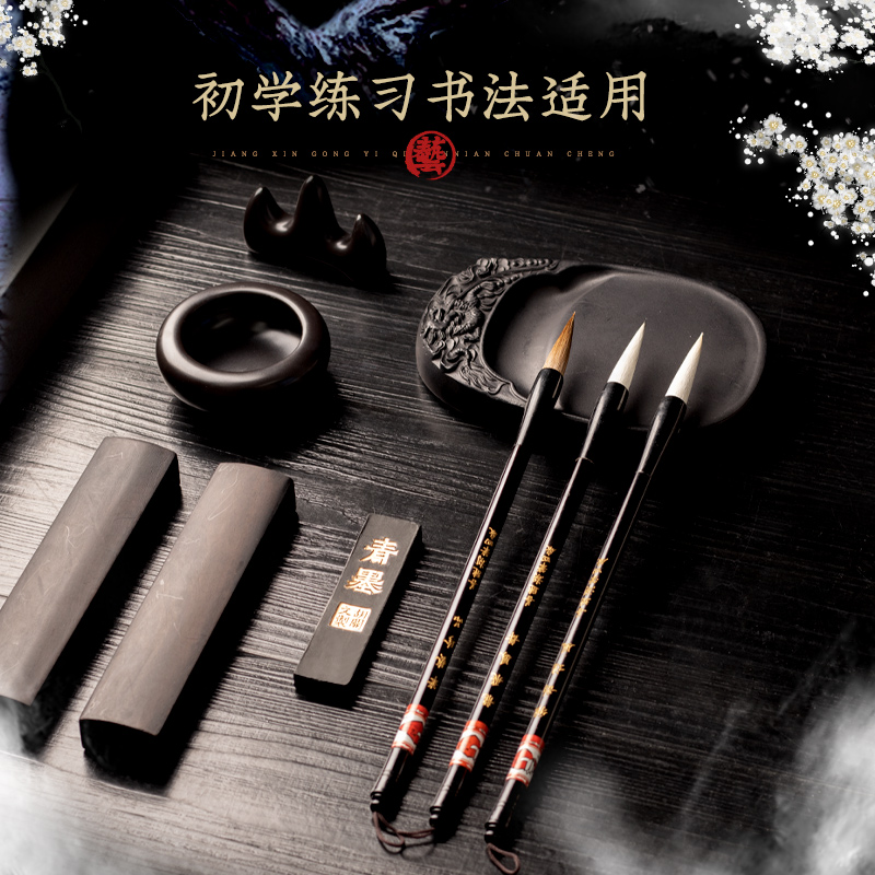 Semi-ancient Caotang Wenfang four treasures set pen, ink, paper, Inkstone boutique calligraphy for beginners, felt pad, gift supplies, inkstone tools, pen hanging, children's ink strips, practice brush, word brush set for beginners