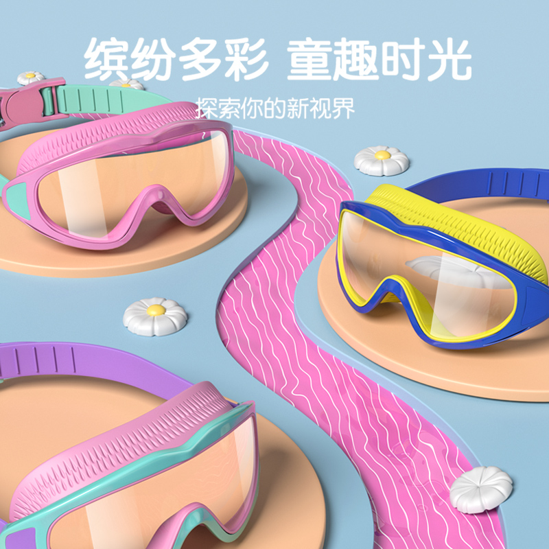 Children's swimming goggles bathing cap boys girls swimming glasses waterproof anti-fog high-definition large frame diving mirror professional suit preparation