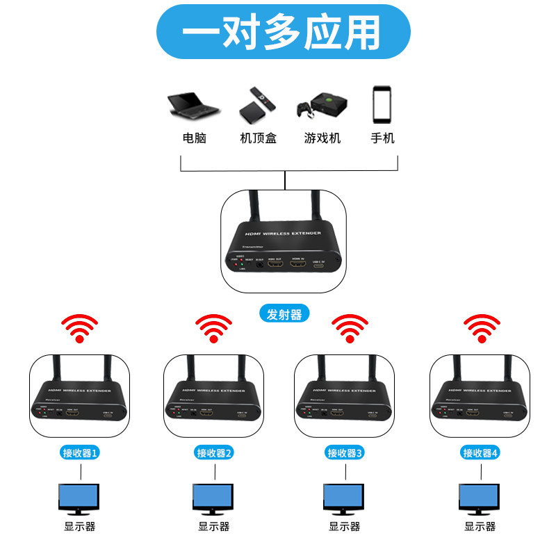 Wireless transmitter 50 meters (1 price can be one-to-many wireless HDMI 200 meters transmitter (1 send 1 receive) wireless HDMI 200 meters transmitter (1 send 2 receive) wireless HDMI