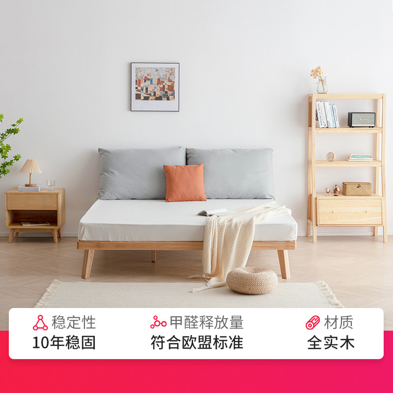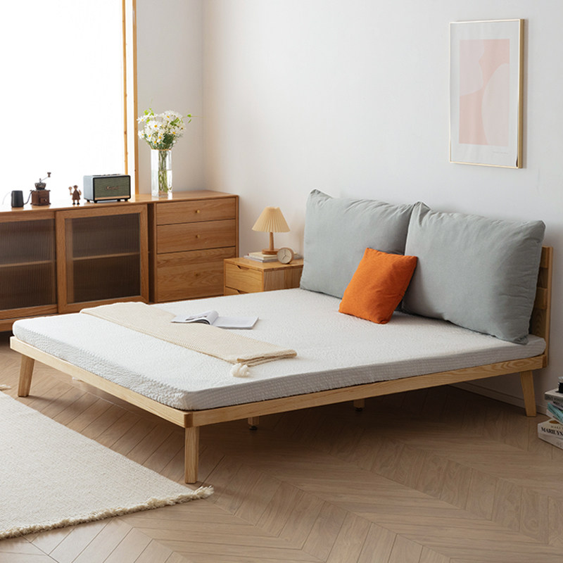 Nordic solid wood bed Tatami ash wood bed Simple low bed No bed head bed Rental room Bed and breakfast bed frame bed customization
