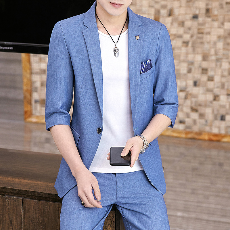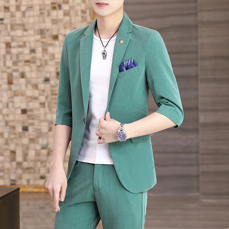 Summer Western-style suit Male and Korean version Body Short Sleeve Small Suit Casual Trend Middle Sleeve Thin style jacket man Two sets