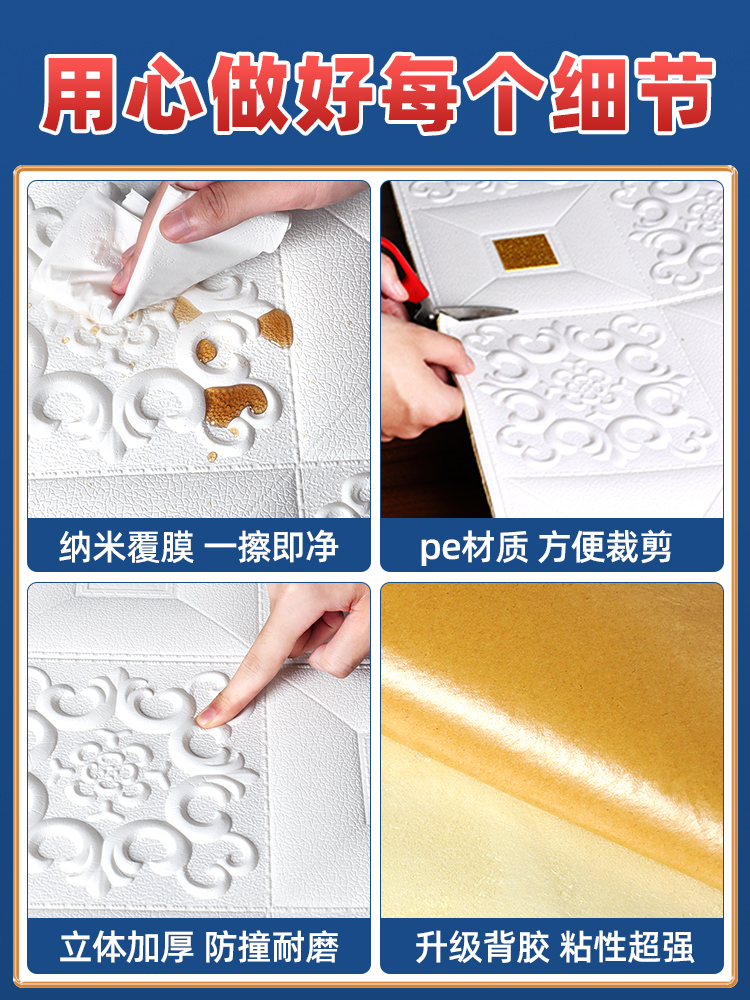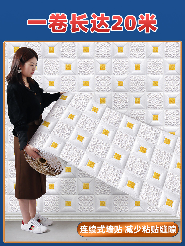 Wallpaper Self-adhesive 3d Solid wall sticker roof waterproof and moisture-proof wallpaper bedroom foam brick background wall mesh red decoration