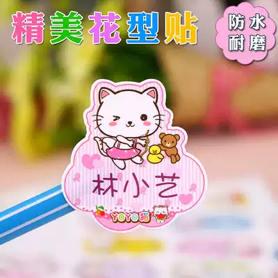 Baby name sticker kindergarten waterproof pot textbook children's name sticker custom girl Korean cute self-adhesive cat
