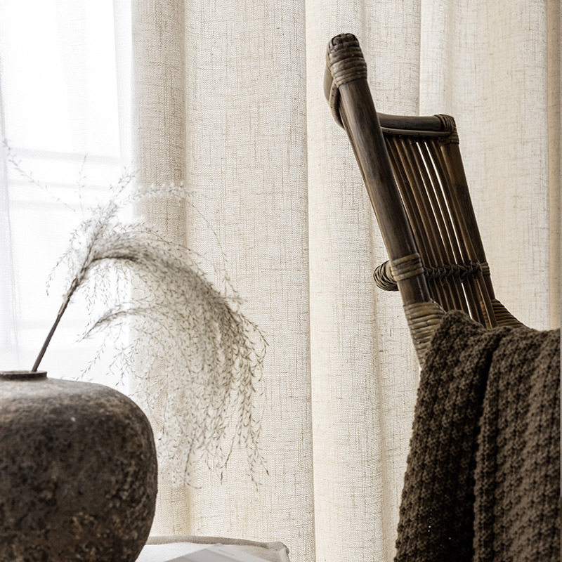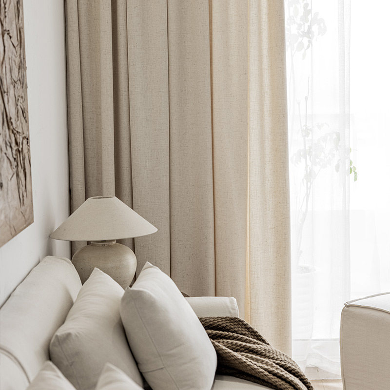 Hemp white curtains Nordic modern minimalist living room bedroom thickened semi-shading solid color cotton linen Japanese-style homestay