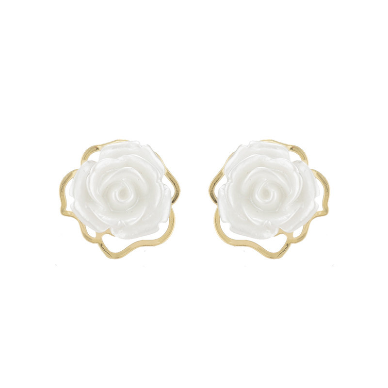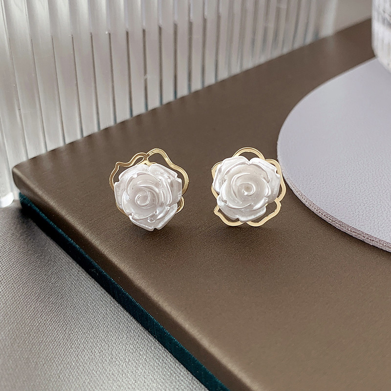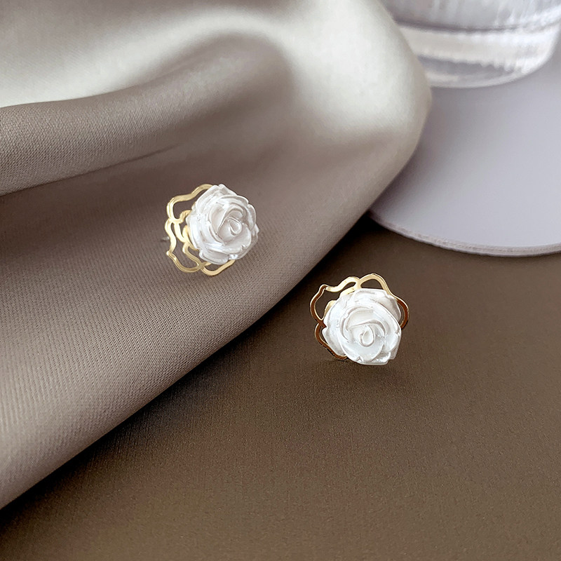 Mosquito Coil Pan Ear Clip Without Earbuds Double Layer Flowers Elegant Ear Needle Method Vintleness Retro Gentle Ins White Rose Earrings