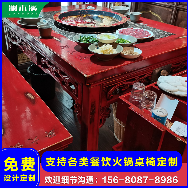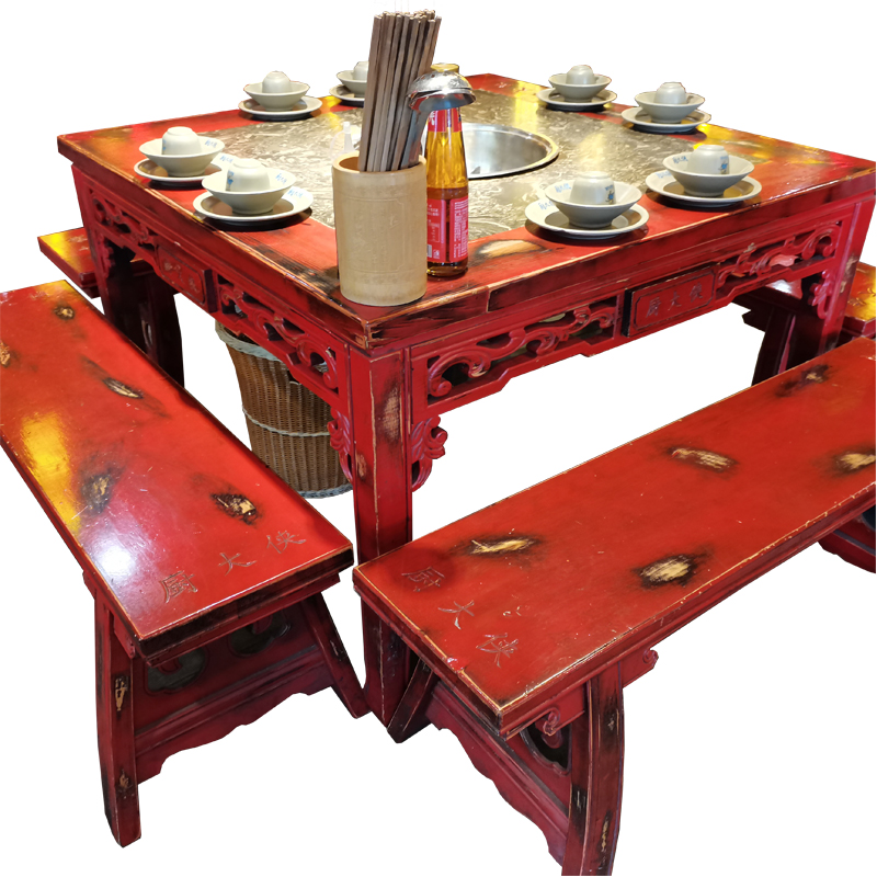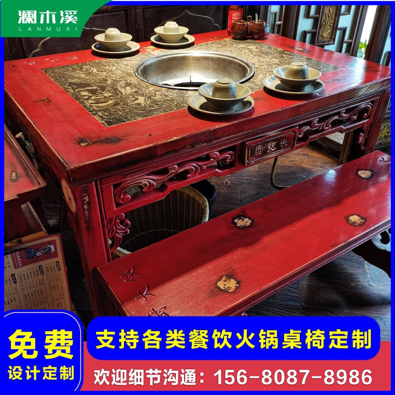 Commercial dining table Induction cooker smoke-free integrated marble hot pot table Custom solid wood round table and chair combination Hotel dining room