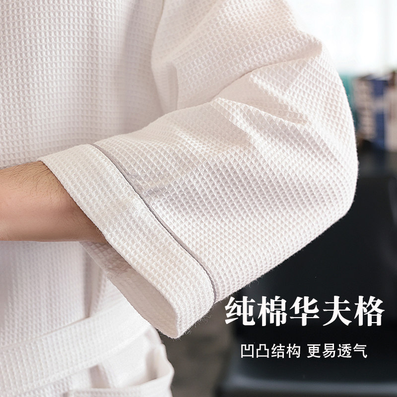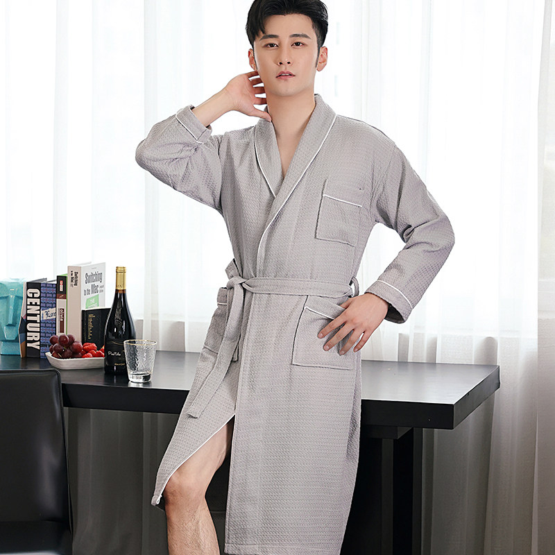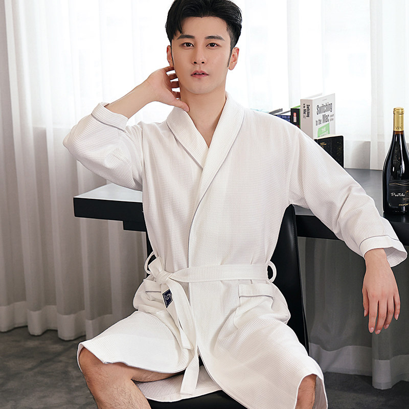 Nightgown bathrobe men's summer five-star hotel cotton long version nightgown absorbent quick-drying spring and autumn men's cotton pajamas