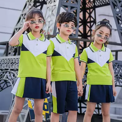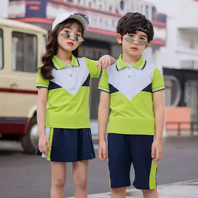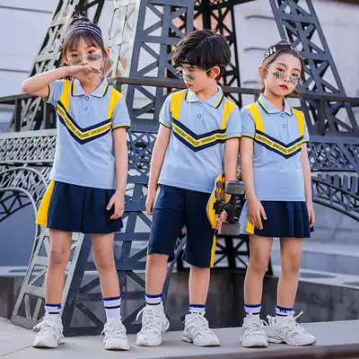 Children's school uniform summer short-sleeved suit 2021 new primary school class suit men and women British college style two-piece suit