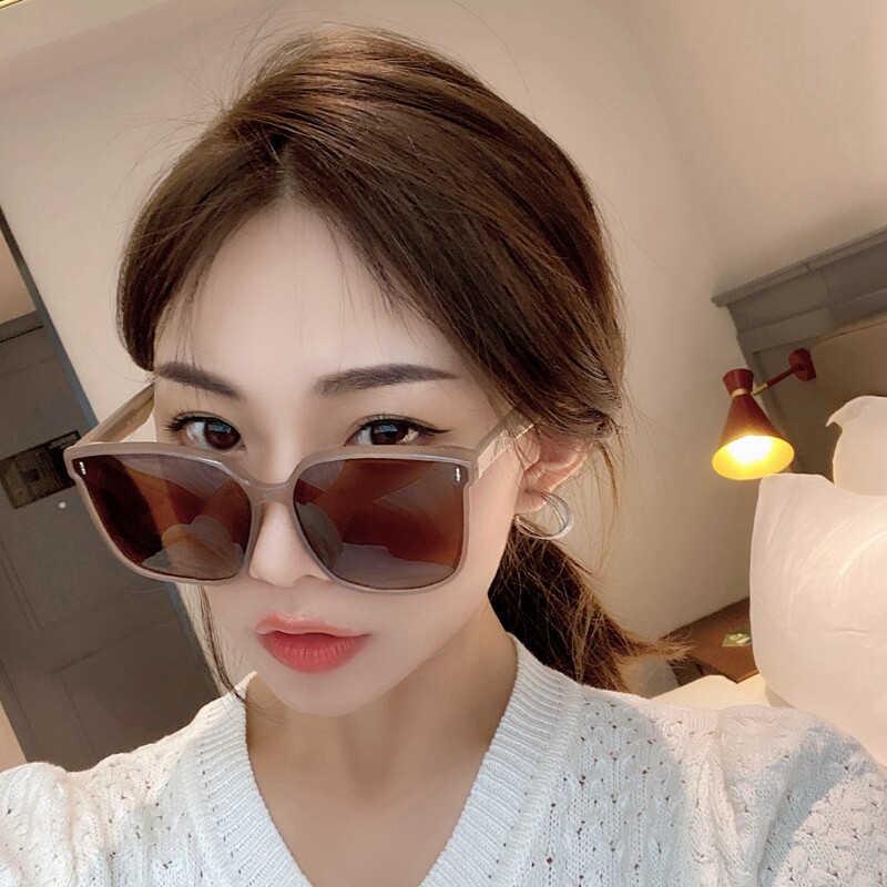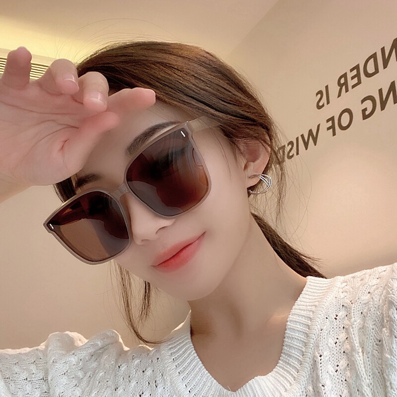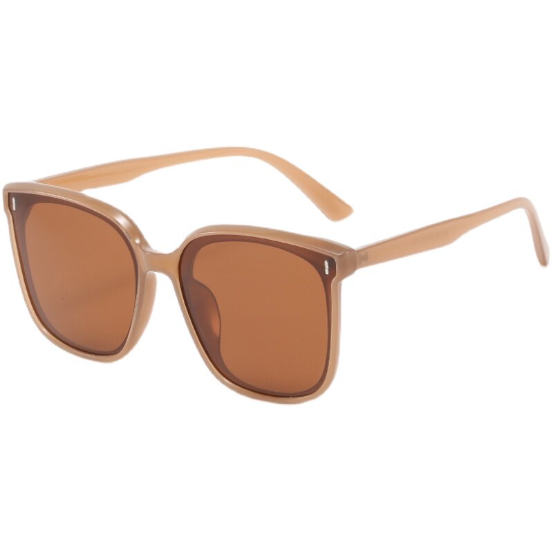 Han Prints Tide Retro Milk Tea Color Polarized Ink Mirror Woman Square Shaped Large Frame Round Face Glasses Anti UV Sunglasses