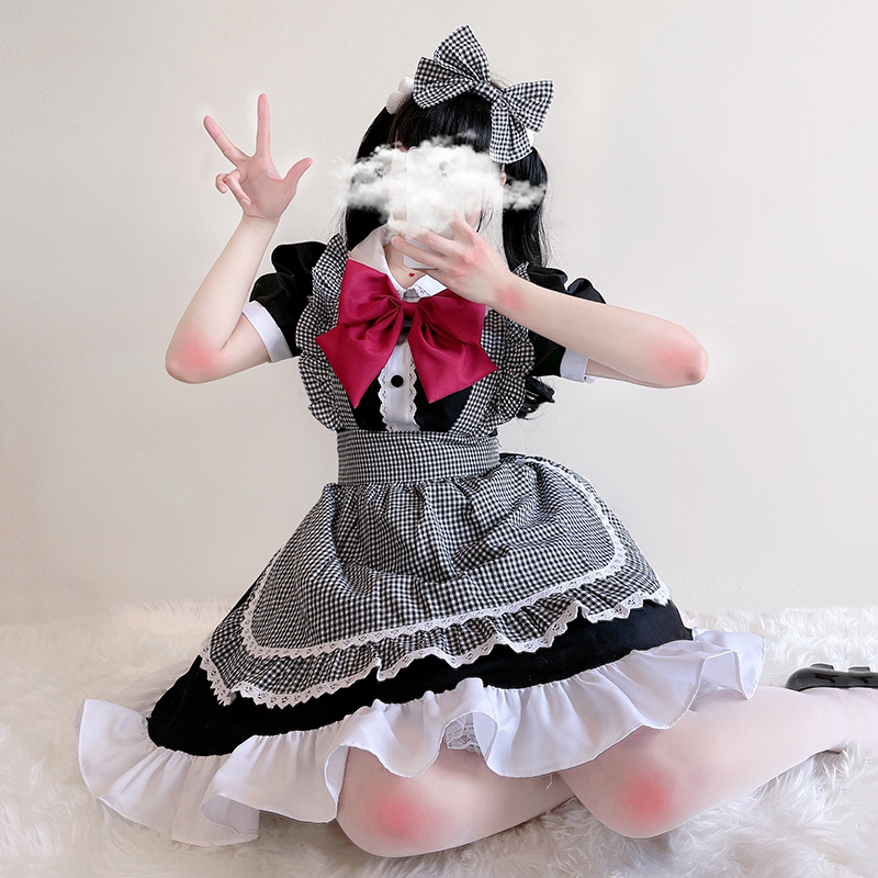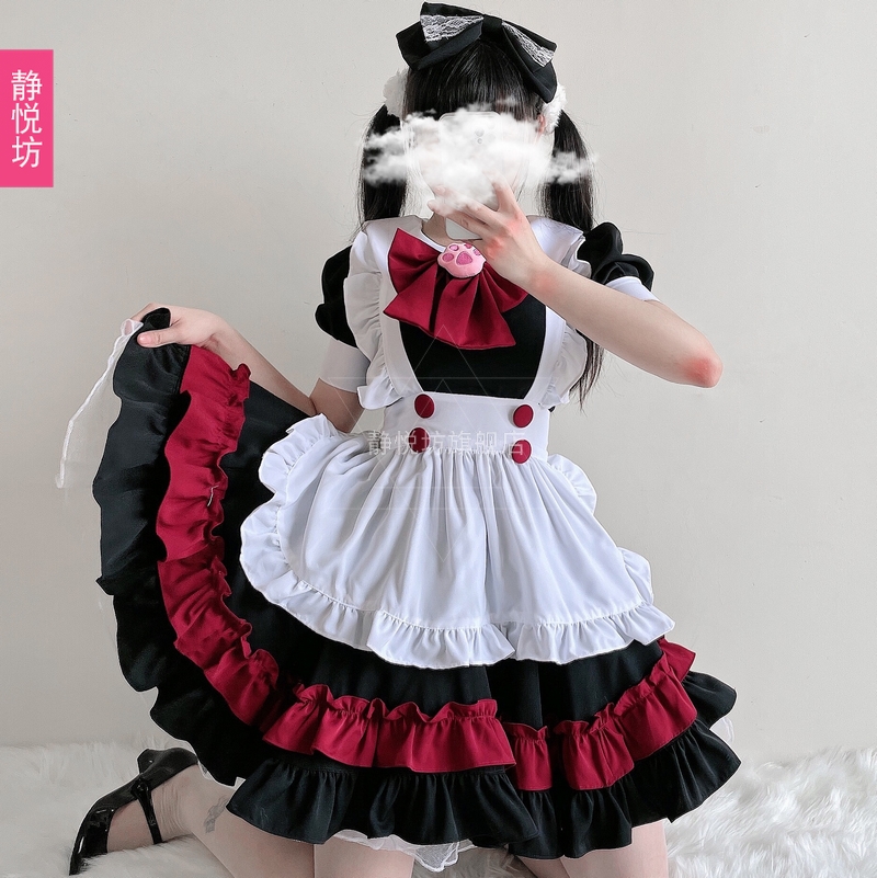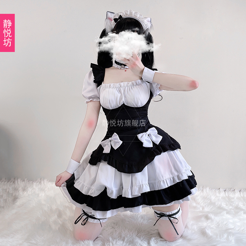 Black and White Maid Dress Lolita Dress Lovely Cat Cosplay Game Play Cos