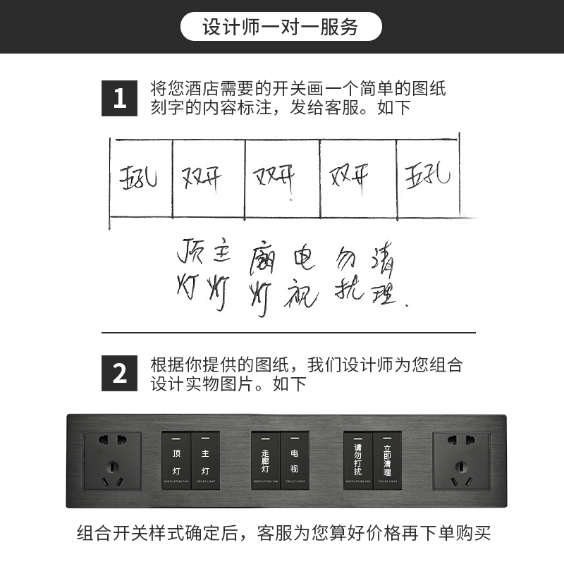 Customized hotel bedside table control panel one-piece switch socket combination hotel with printed engraving room 86 type joint