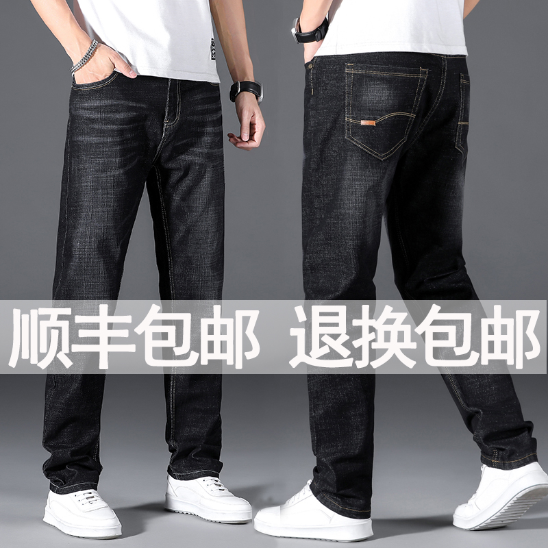 Autumn and winter loose big straight jeans men plus fat plus size fat guy casual elastic long pants wide leg pants trendy