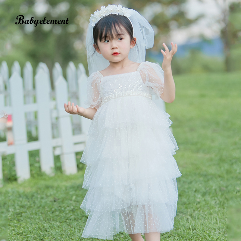 Girls dress in summer dress 2022 new childhood bubble sleeve cake, pork dress dress