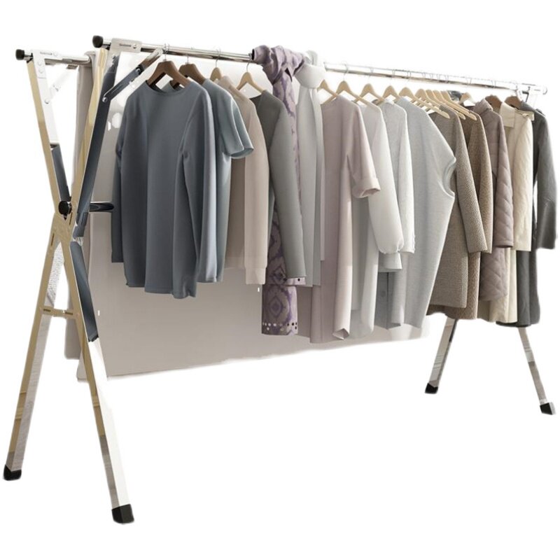 201 stainless steel clothes hanger floor sturdy and telescopic mobile folding sunburn by small balcony double pole type outdoor-Taobao