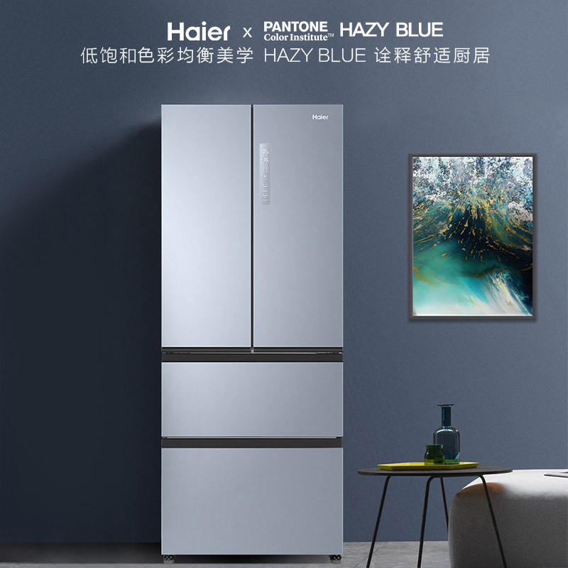 (Fresh) Haier 405L French multi-door four-door frequency conversion level one energy efficiency ultra-thin smart household refrigerator 64