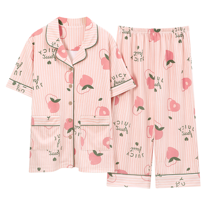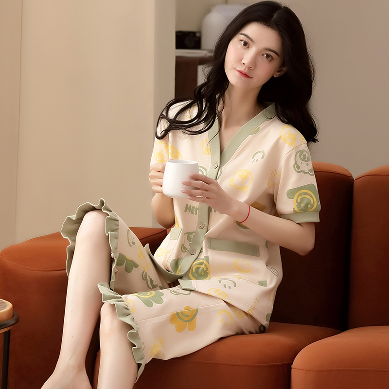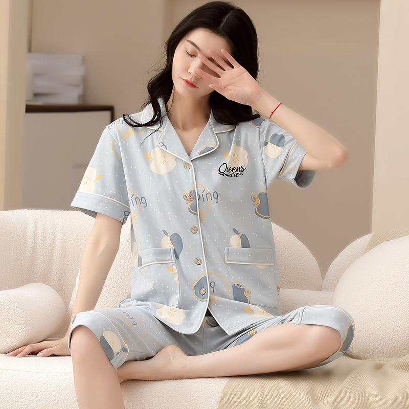 Gujin@Pajamas Women's Summer Thin Cotton Short-sleeved Cropped Pants 2022 New Cotton Home Service Women's Suits
