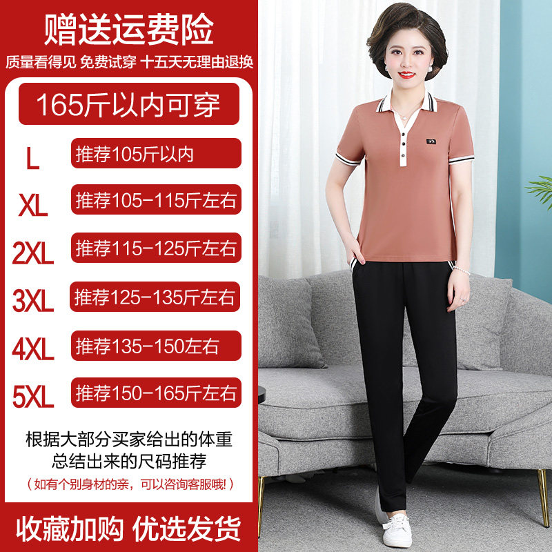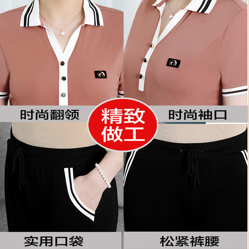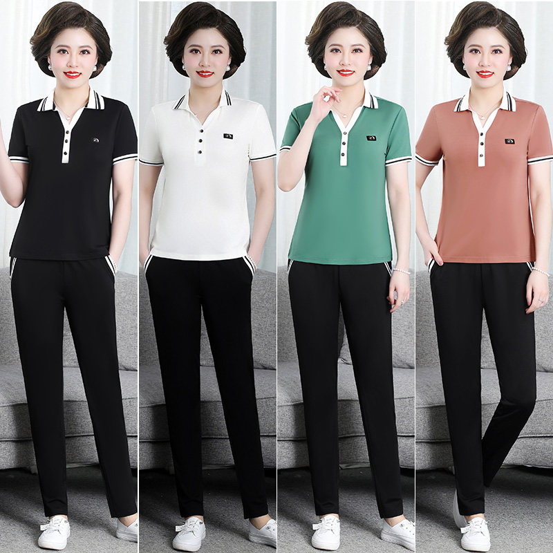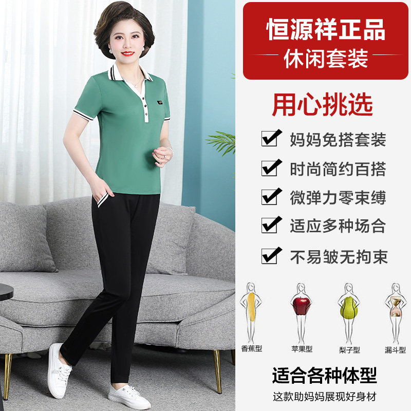 Hengyuan Xiang Mama Summer Clothing Sports Suit Women's 2022 New Short Sleeve T-shirt Middle-aged and Casual Two-piece Style