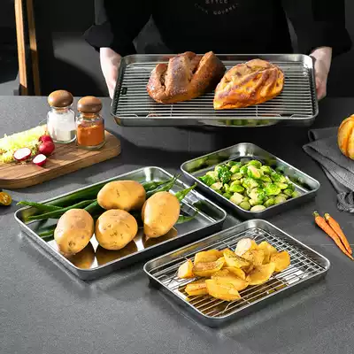 Stainless steel tray with net oil drain tray kitchen oven baking tray tray sausage hot pot storage tray