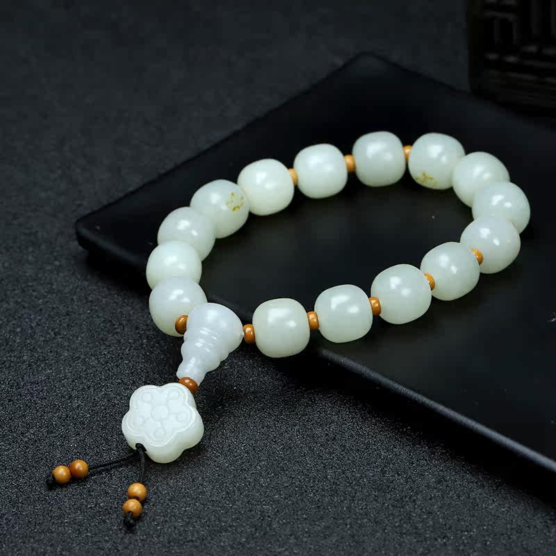 Xinjiang and Tian sheep fat white jade handmade natural leather color seed bracelet for men and women in single ring old type of pearl necklace 49 2g