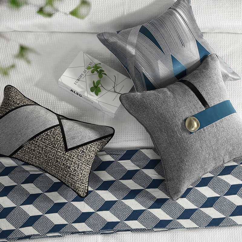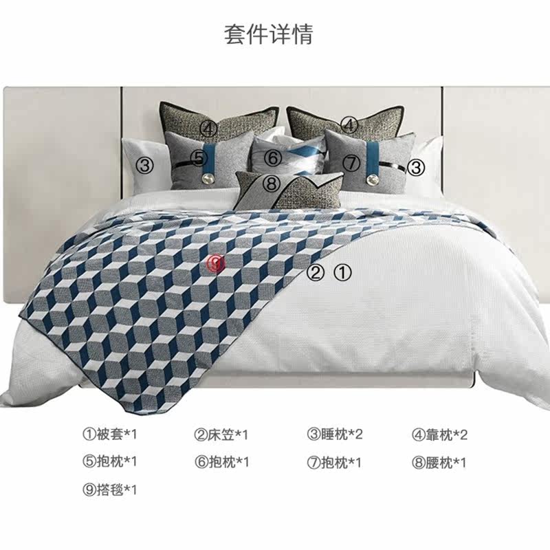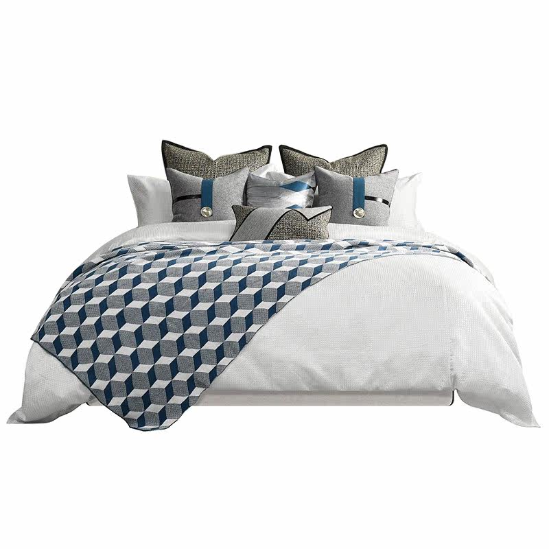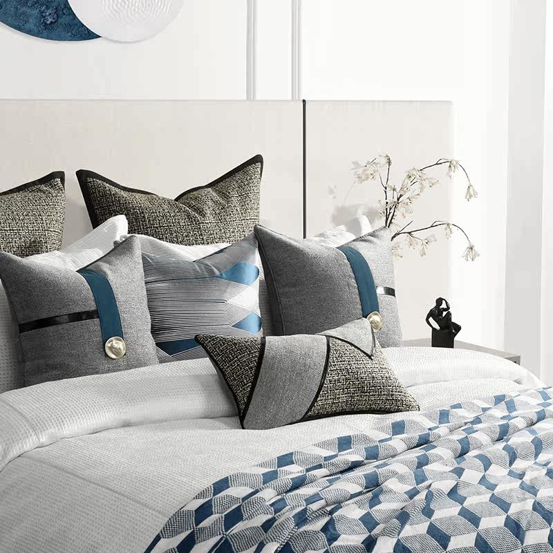 Blue dot Decorated Grey style flat bed Bedding High-end Villa Modern-style Room Bed Goods Light Extravagant pillow Rover