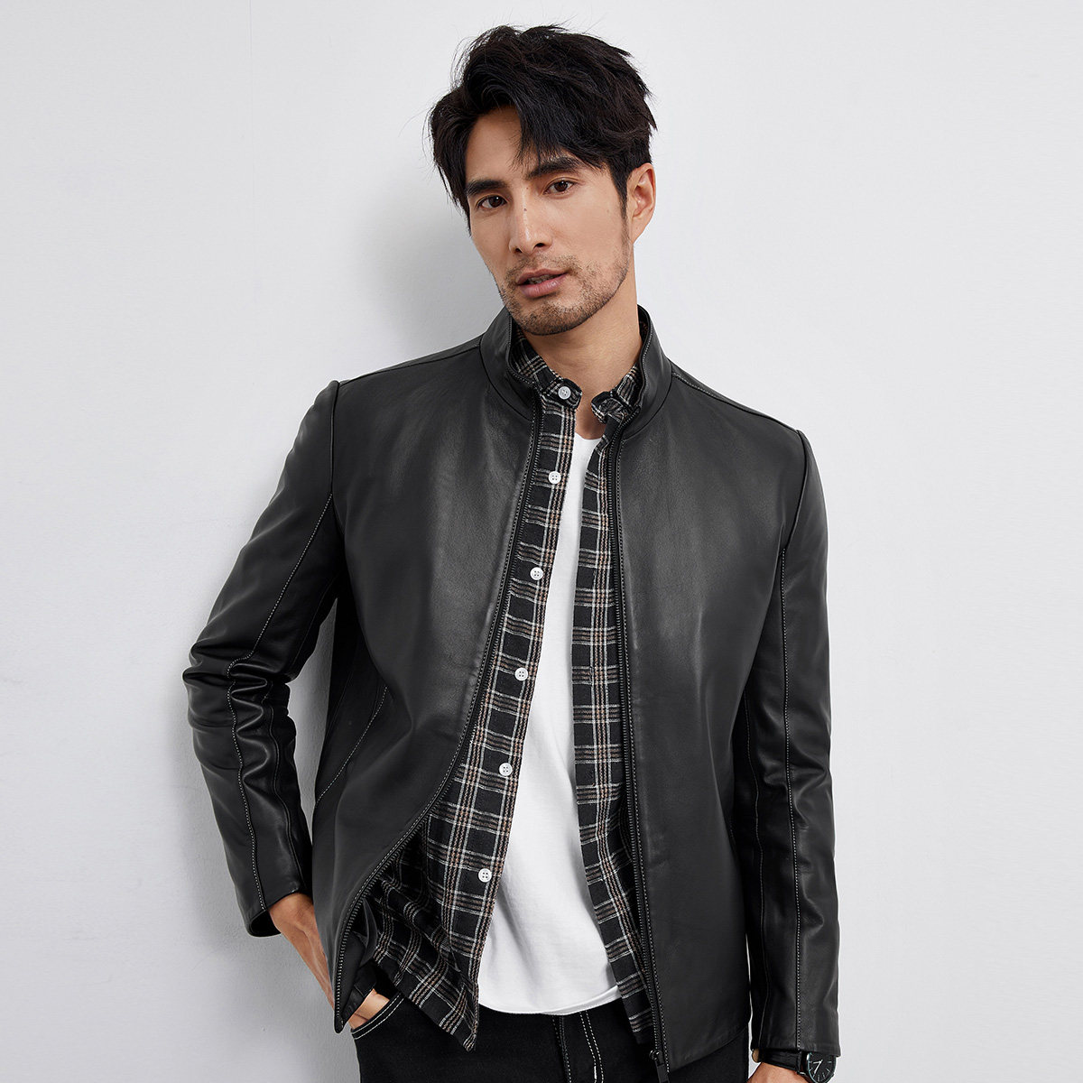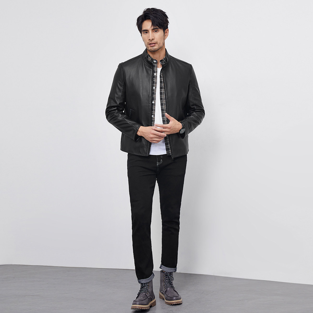 Haining leather leather clothing men's sheep leather short style collar 2021 new men's leather jacket coat thin handsome Spring