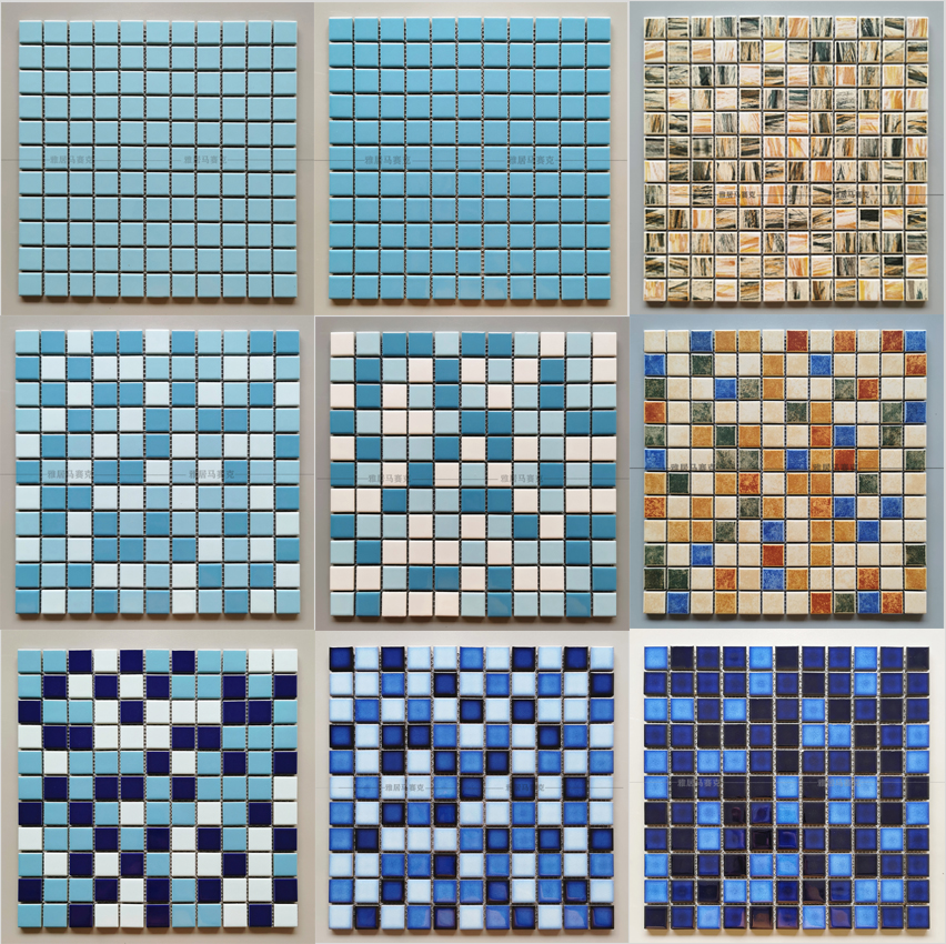 pool small square brick Nordic full porcelain ceramic mosaic dressing room fish pool wall brick black and white blue grid brick 25
