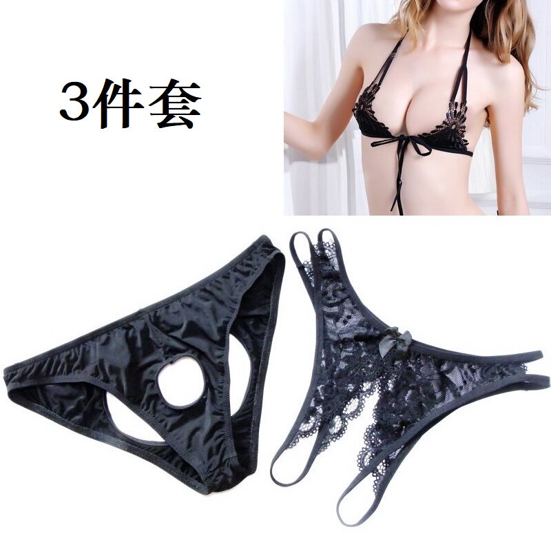 Lovers sexy hollowed-out underpants lace ice silk
