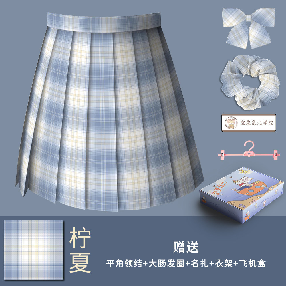 Empty Chinchilla pill (lemon summer)original genuine jk grid skirt Japanese college style spring and summer half pleated skirt spot