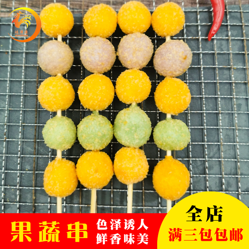 Colorful fruit and vegetable skewers, vegetarian barbecue, fried spicy hot skewers, net red snack ingredients, fresh vegetables, seasoned pickled skewers