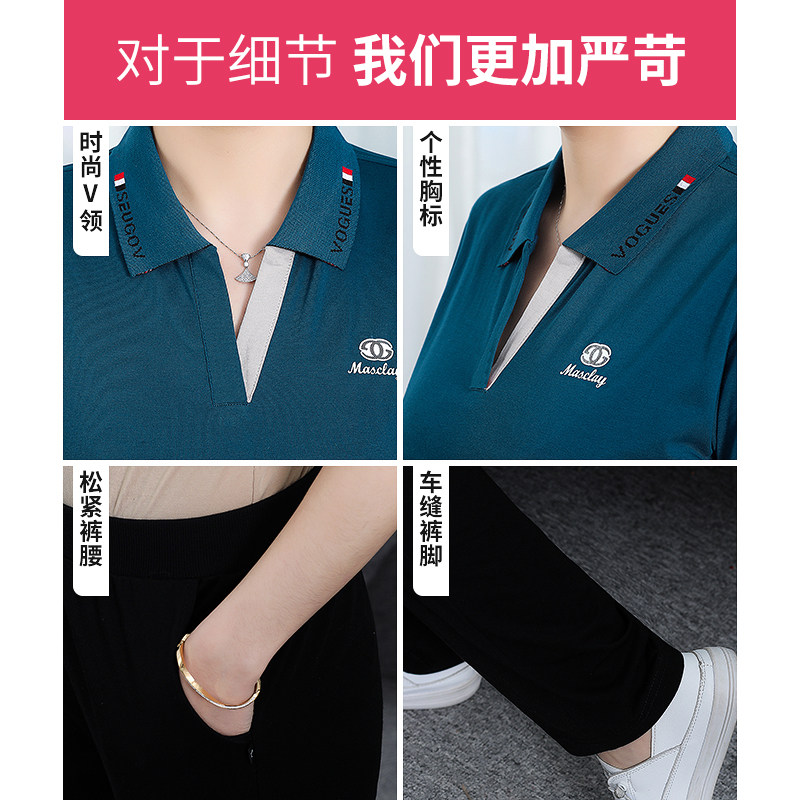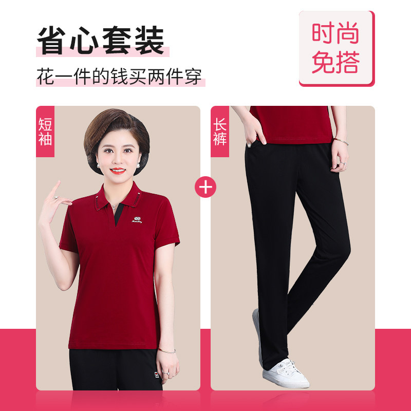 Middle Aged Sports Suit Women Summer 2022 New Middle Aged Mother Summer Clothing Short Sleeve Summer Leisure Sports Wear Thin