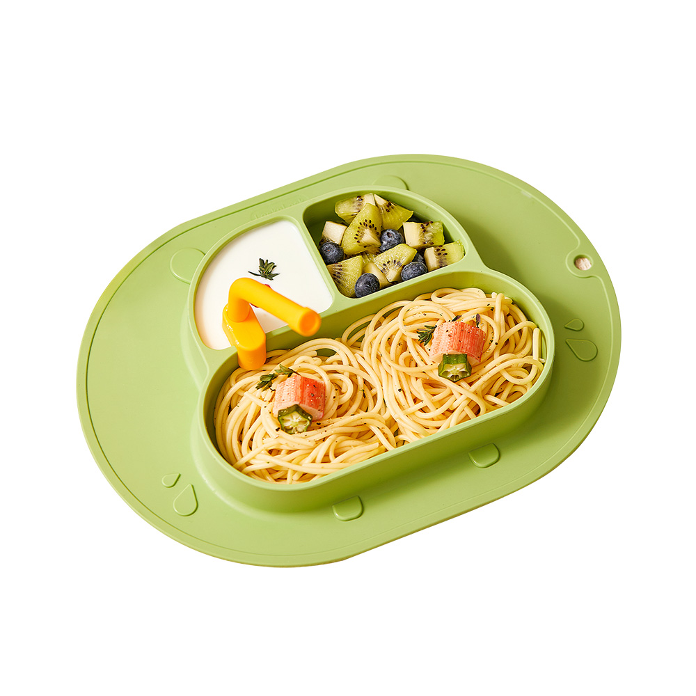Music Buckle Lotte buckle baby dinner plate Lattice Trays Silicone children Dinner Plate Suction Cups Cartoon Baby Bowls for Eating Cutlery